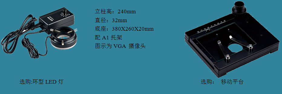 选配各种荧光、LED环形灯,详见外接光源部件图