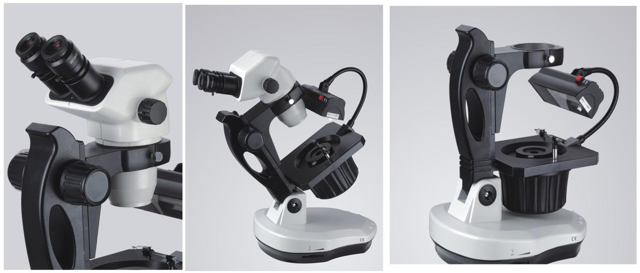 ■ 多功能的底座支架设计,专业珠宝显微镜支架体,具有底盘旋转、观察倾角调节,镜体升降等功能,能够根据不同的使用习惯与不同的样品,进行随意调整。