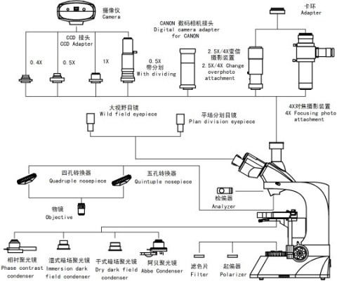 功能扩展 通过配置摄像观察附件(CCD接头、数码相机接头,数码单反相机接头等),可实现高清晰的数码摄录和摄像观察 |