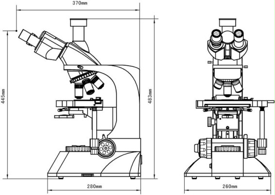 载物台 双层机械式载物台,尺寸:210mmX140mm;移动范围:75mmX50mm,适度的设计理念,使用者操作载物台时更方便更舒适。 |
