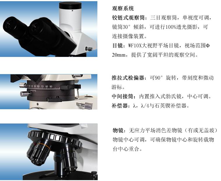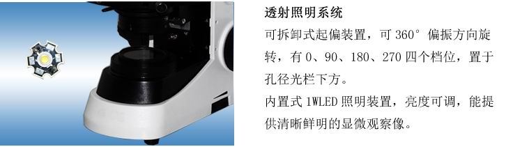 | 起偏器 | 可360°旋转,有0、90、180、270四个读数 |