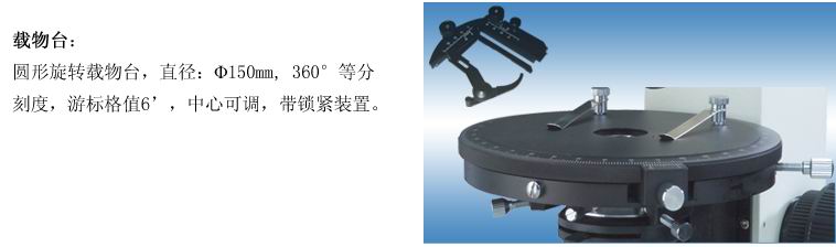 旋转式载物台,直径:Φ150mm,360°等分刻度,游标格值6',中心可调,带锁紧装置