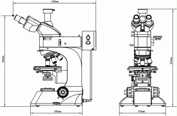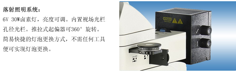 内置检偏器, 可自由切换正常观察与偏光观察, 可90°旋转,游标格值12' |