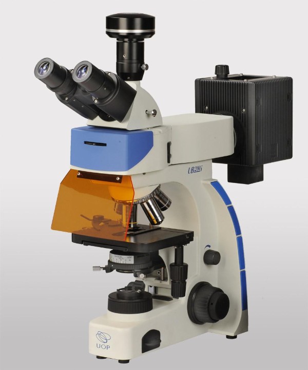光源, 用以照射被检物体, 使之发出荧光, 然后在显微镜下观察物体的形状及其所在位置。荧光显微镜用于研究细胞内物质的吸收、运输、化学物质的分布及定位等。 细胞中有些物质,如叶绿素等,受紫外线照射后可发荧光;另有一些物质本身虽不能发荧光,但如果用荧光染料或荧光抗体染色后,经紫外线照射亦可发荧光,荧光显微镜就是对这类物质进行定性和定量研究的工具之一。荧光显微镜