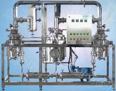 工作原理: 将药材投入提取罐内,加入5—10倍的溶剂如水、乙醇、甲醇、丙酮等(根据工艺要求)。开启提取罐加热系统,使提取液加热至沸腾20--30分钟后,用抽滤管将三分之一的提取液抽入浓缩罐。关闭提取罐直统与夹套热水,开启浓缩罐直统与加热系统使浓缩汁温度保持在80℃左右,真空度保持在-0.05到-0.08MPA,浓缩时产生的二次蒸汽经过冷凝器与冷却器变成冷凝液回流至提取罐做新溶剂加入药里,新溶剂由上而下通过药材层到提取罐底部,药材中的可溶性成分溶解于提取罐内溶剂,提取液经抽滤管抽入浓缩罐,浓缩产生的二次蒸汽又送至提取罐做新溶剂,形成新溶剂回流提取,直至完全溶出(提取液无色)浓缩继续进行,直至浓缩成需要的比重药膏,提取罐内的无色液体可下次复用,若是有机溶剂提取,则先加适量水,开直统与夹套热水,回收溶剂后,将渣排掉。 |